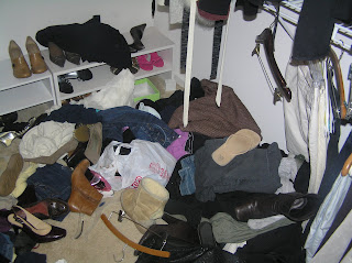 OMG! lol tha would driveme nuts!! I am constantly going through clothes! Hubby has so much more then me!! Today my goal is to clean out our night stands! lol they seem to collect everyhing like junk drawers! lol Goodluck with yor organizing I am sure it's hard with a kid! JoHanna will be here in 6 weeks or less I am trying to get it all done now so I have all next week to work on her nursery!